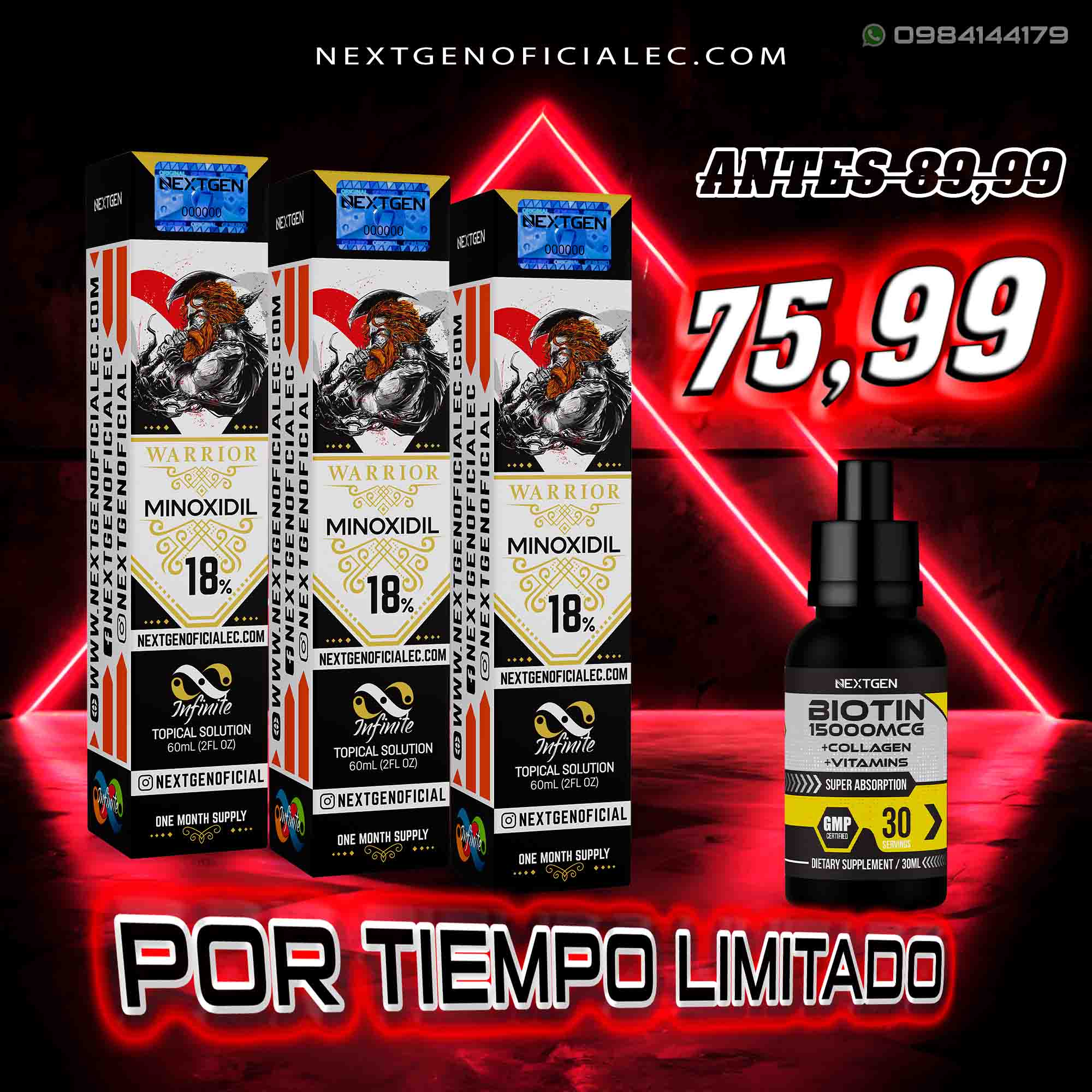 Arma tu arsenal para el crecimiento capilar y de barba con nuestro paquete optimizado de 3 frascos de Warrior 18% Minoxidil. Este tratamiento de 3 meses es la artillería pesada que tus folículos necesitan para un impulso máximo. Con la adquisición del paquete Warrior 18%: